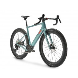 L’Extrema Italia è disponibile come set telaio o come bici completa nelle versioni Mercurio, Terra o Project X (finitura in carbonio nudo), quest’ultima che mette in mostra il layup del carbonio. Tutte le versioni complete sfruttano l’UDH e utilizzano configurazioni mullet con cambi e freni SRAM Rival/Force AXS con un deragliatore posteriore serie Eagle Transmission (T-Type) e un’enorme cassetta 10-52. Le due viti nella parte inferiore del tubo sella consentono l’installazione di un fermacatena ma si adattano anche a un supporto FD per trasmissione elettrica 2x (come SRAM AXS o GRX Di2). Ciò tuttavia riduce in qualche modo il gioco del pneumatico posteriore.